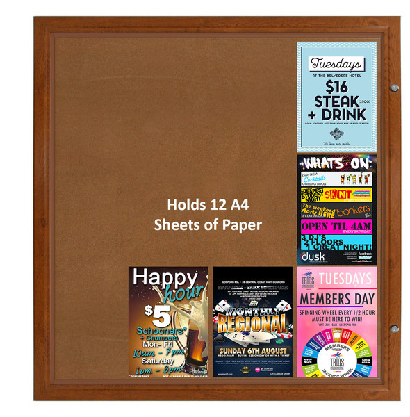 A lockable cork board is perfect for schools, strata units and companies who need to display notices or graphics prominently and want to have easy access to change their content. Suitable for outdoor use, the notice boards are fully water resistant and feature a polycarb cover to protect your graphics. The wood finish aluminum frame is very strong and robust and the lockable door will come with two sets of keys.