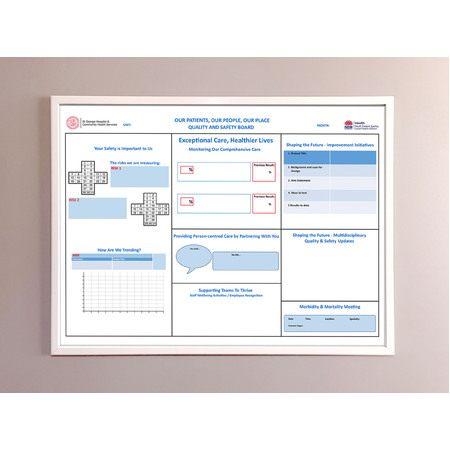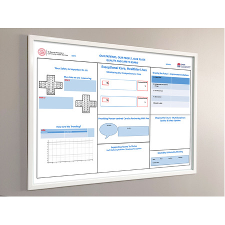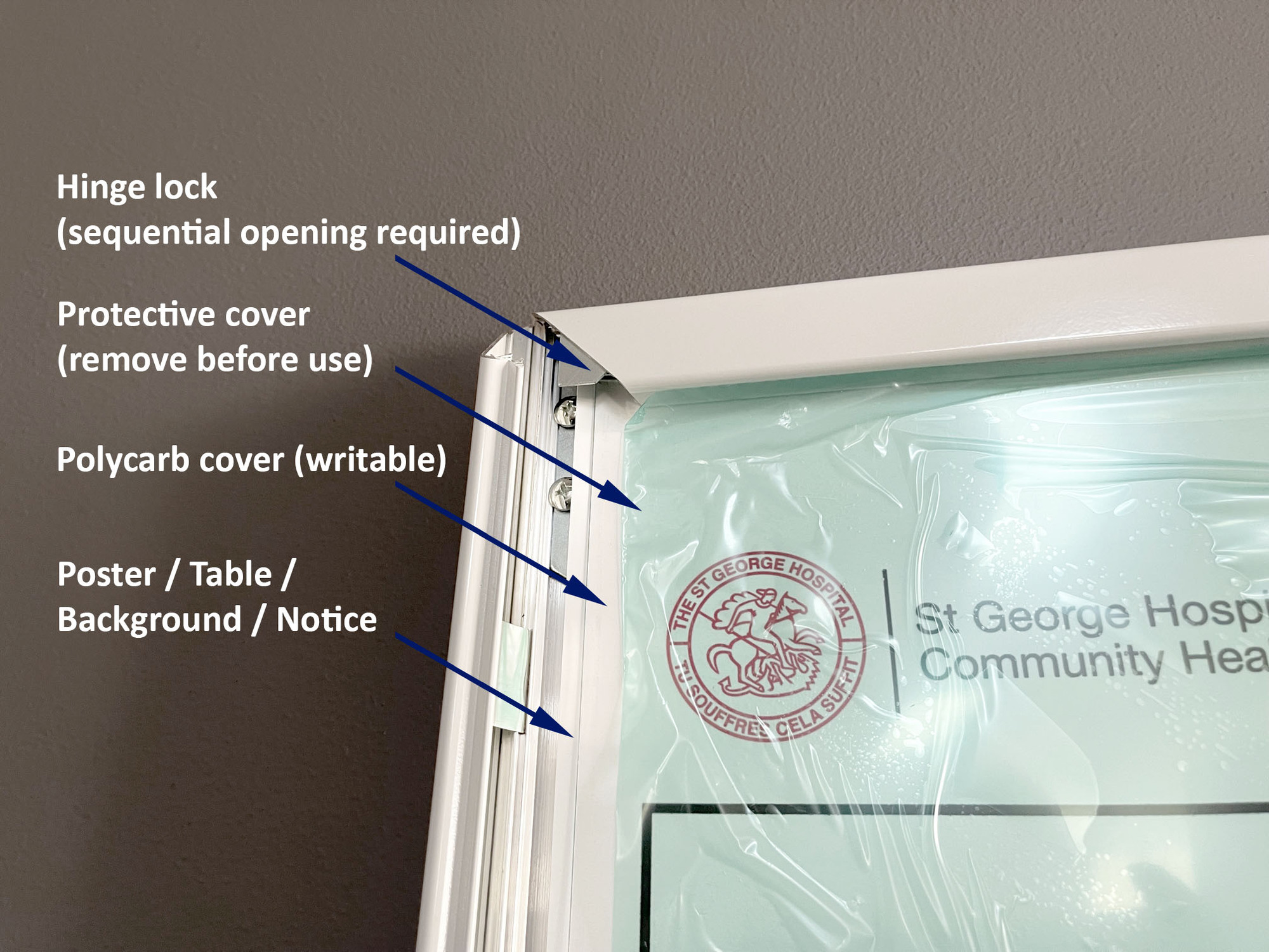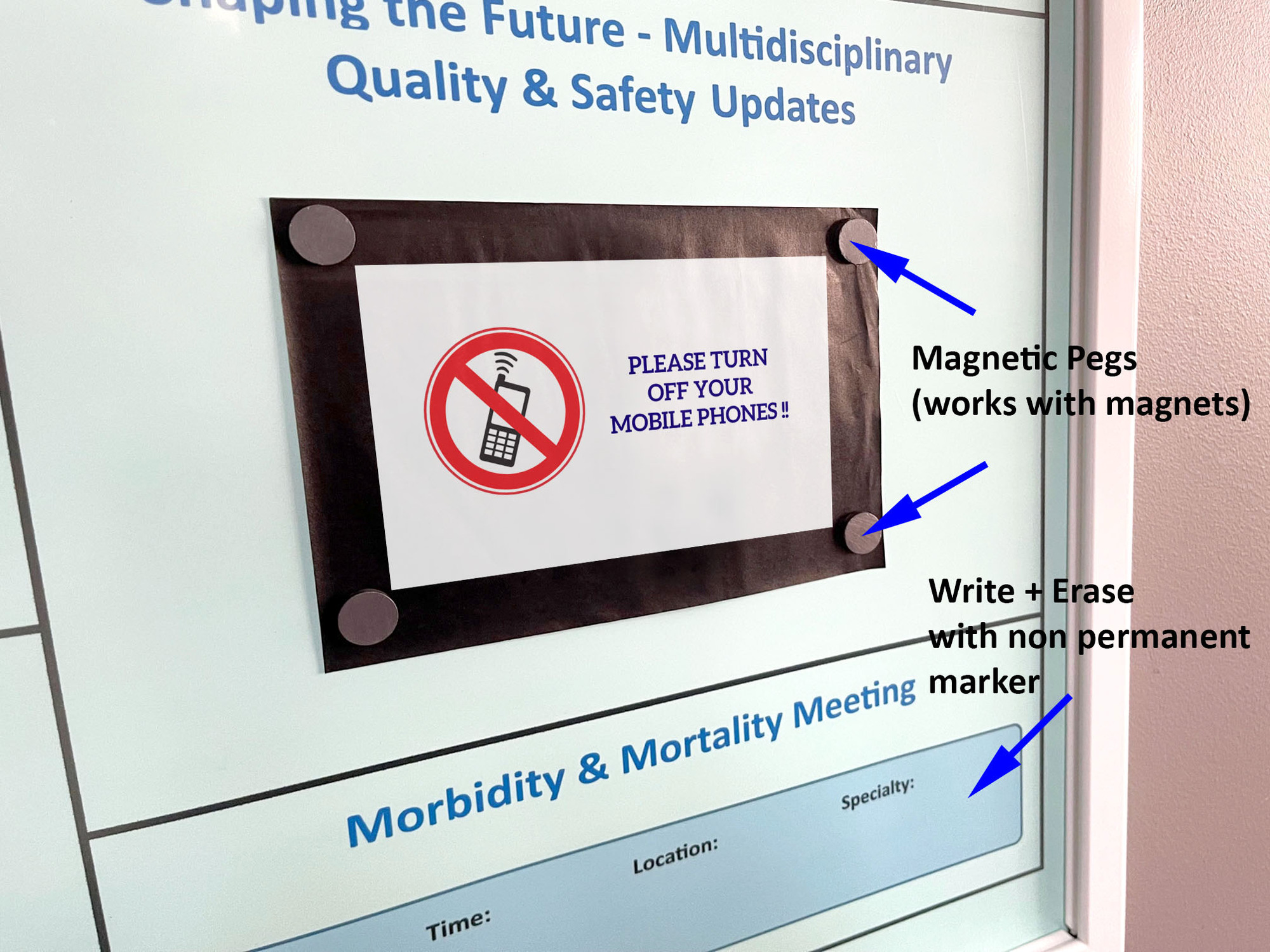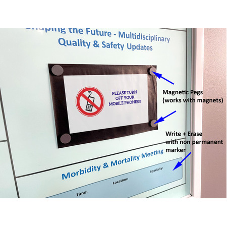 These frames are ideal for hospital patient boards. A poster is inserted into the frame and clear polycarbonate cover is placed over the poster making it easy to coordinate hospital or patient information. It is a great platform to relay all sorts of information for example patient to caregiver and vice versa. Writing on the polycarbonate cover can be wiped clean for various uses and the magnetic backing holds whiteboard markers or magnets.