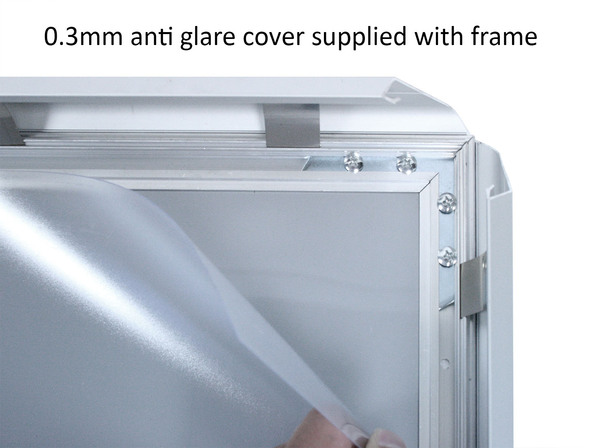 They can be displayed in portrait or landscape orientation and come supplied with an anti-glare cover to protect your poster and with mounting hardware.