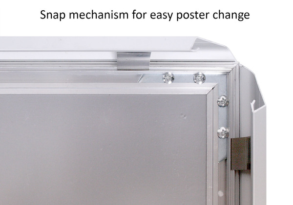 The clip frame system makes changing graphics easier without having to remove the frame from the wall each time. These poster frames are also called snap frames or clip frames.