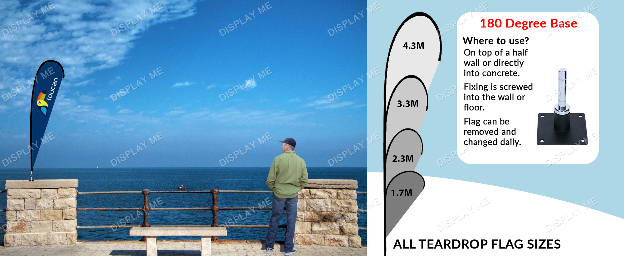 Double Sided 2.3 Meter Tear Fabric Flag with 180 Degree Floor Mount Base