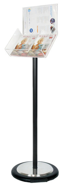 Black Freestanding Brochure Holder Holds 2 A5 with Wheel Base