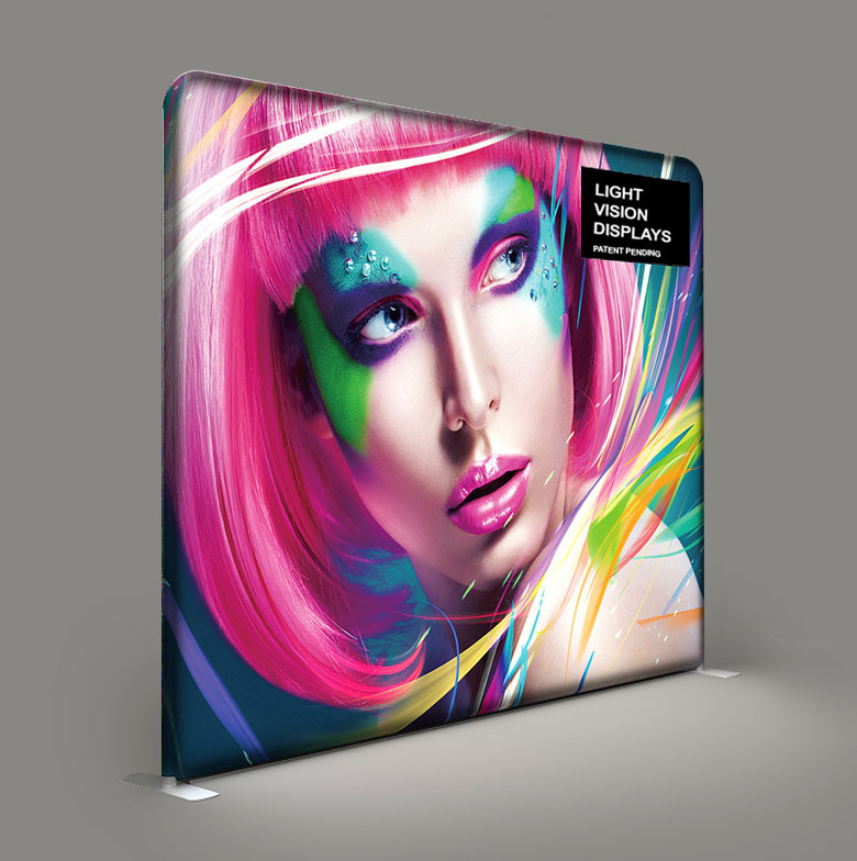 The graphic is a single sided, wrinkle - resistant dye sublimation full colour print with a total block out fabric on the back. The fabric graphic covers the frame and lights and it stays in place with a zipper providing tension for a smooth finish. The zipper is on the lower back of the block out fabric.