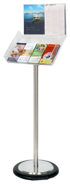 - This brochure holder can display 4 piles of DL brochures in portrait and a A3 landscape header.