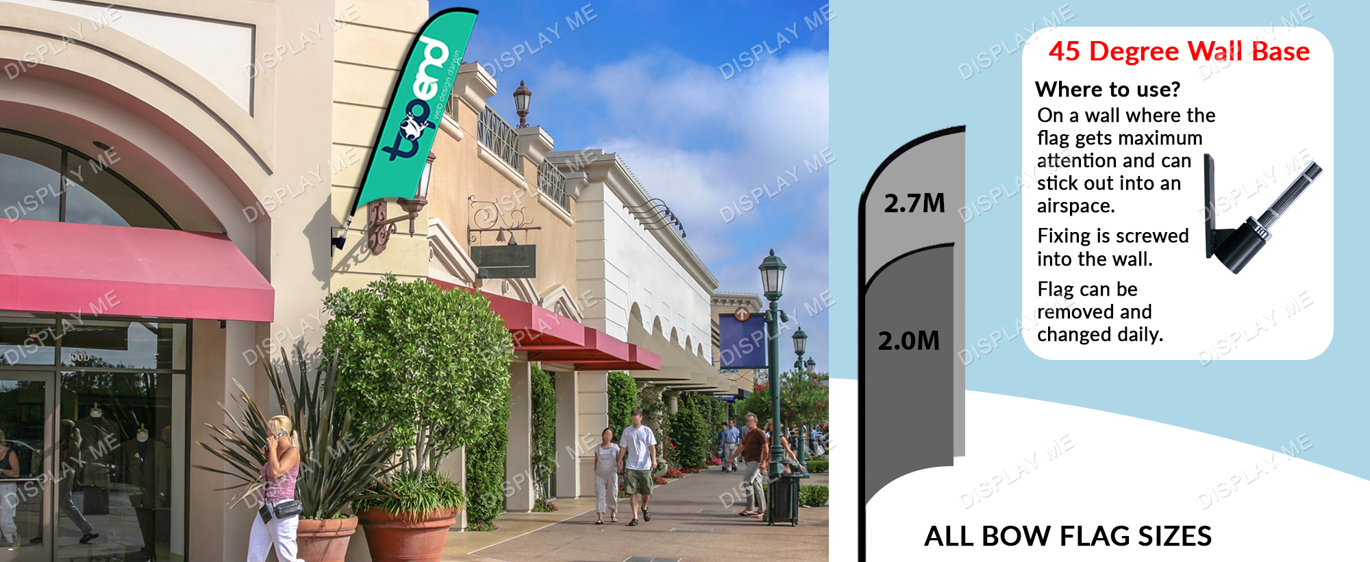 Double Sided 2.7 Meter Bow Fabric Flag with 45 Degree Wall Mount