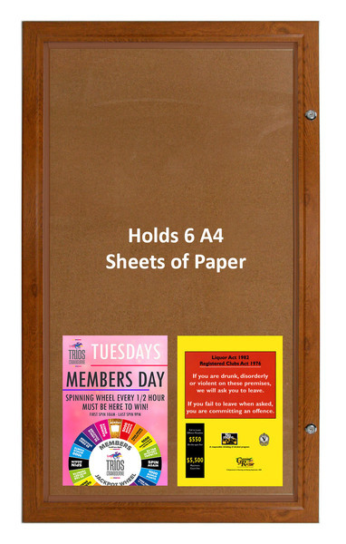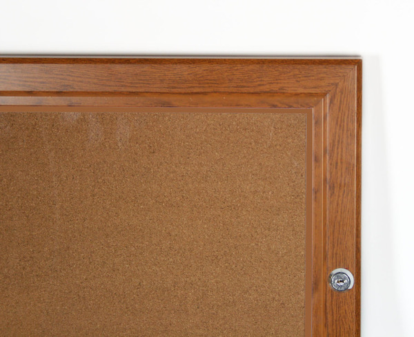 A lockable cork board is perfect for schools, strata units and companies who need to display notices or graphics prominently and want to have easy access to change their content. Suitable for outdoor use, the notice boards are fully water resistant and feature a polycarb cover to protect your graphics. The wood finish aluminum frame is very strong and robust and the lockable door will come with two sets of keys.