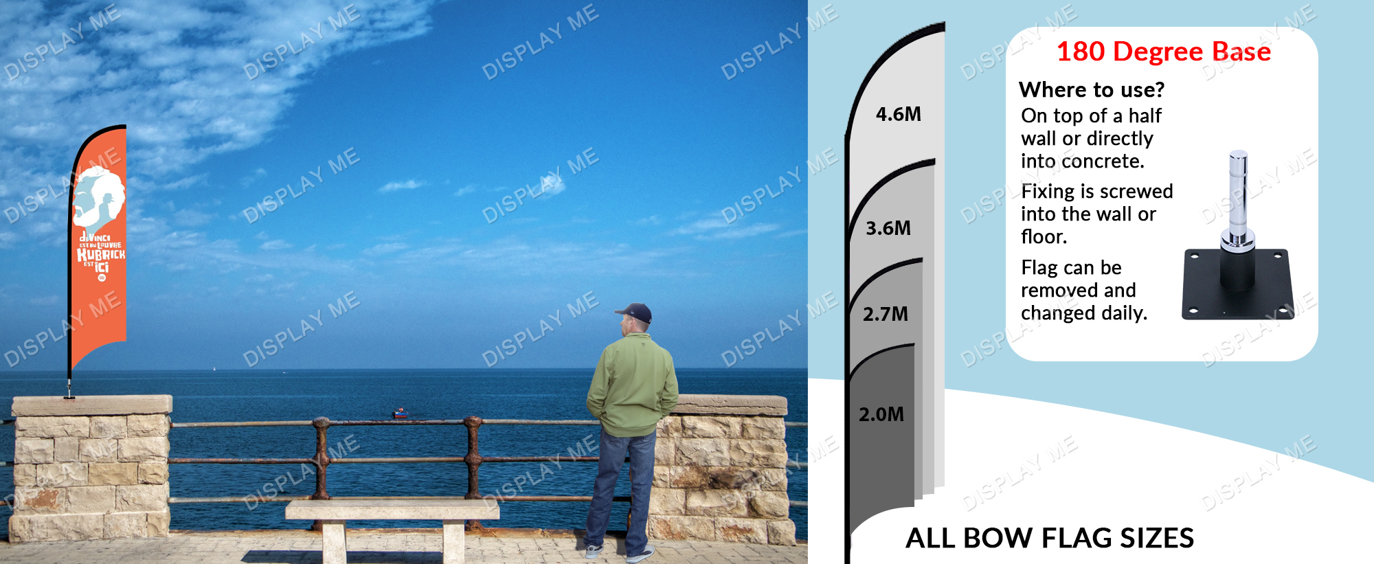 Double Sided 2.7 Meter Bow Fabric Flag with 180 Degree Floor Mount Base