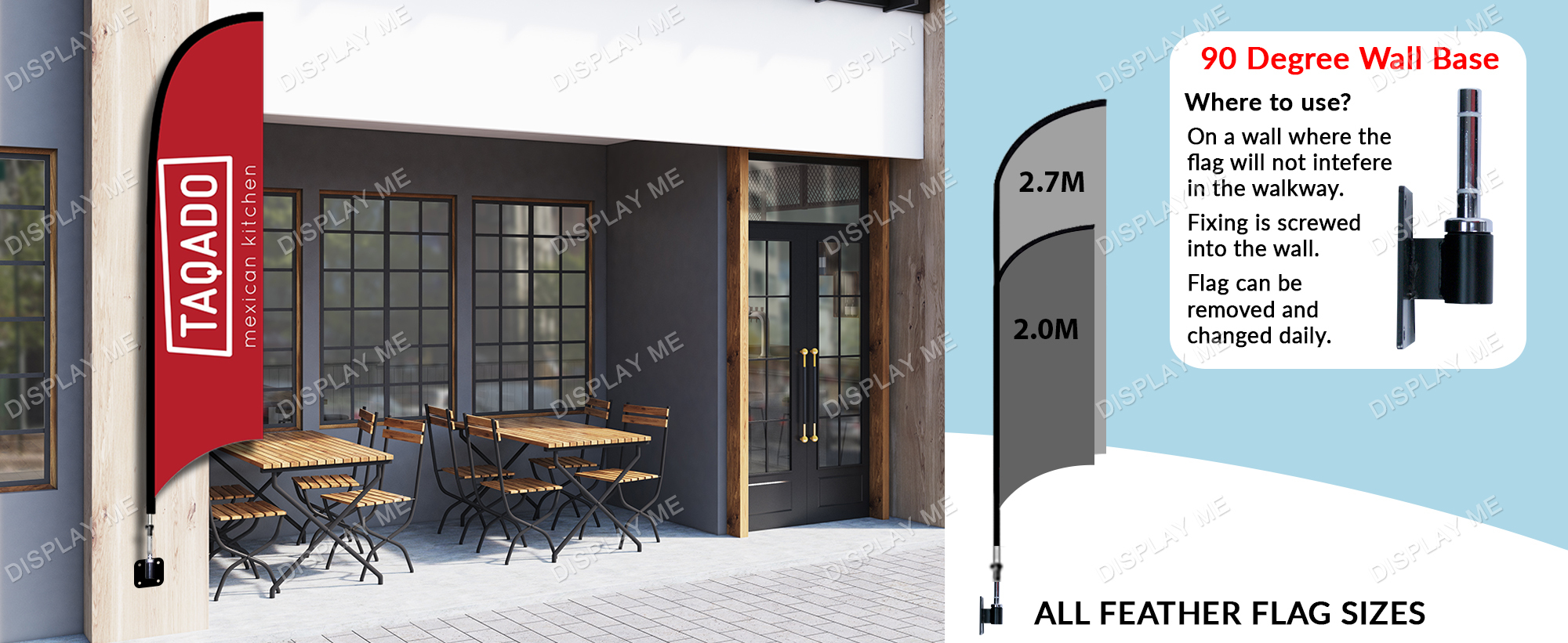 Single Sided 2.7 Meter Bow Fabric Flag with 90 Degree Angle Wall Base