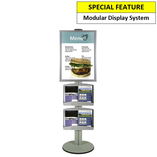 A1 Snap Frame and 2 Brochure Trays on 1.8m Silver Combo Pole