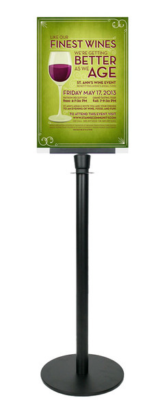 A3 Black Portrait Steel Sign Holder clip attachment for Rope Queue Barrier Pole