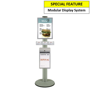 A3 Poster Holder with Business Cards and Steel Suggestion Box on Siver Combo Pole 1450mm High - Single Sided