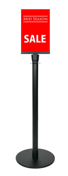 A4 Black Portrait Steel Sign Holder clip attachment for Rope Queue Barrier Pole