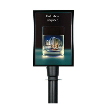 A3 Black Portrait Steel Sign Holder clip attachment for Rope Queue Barrier Pole