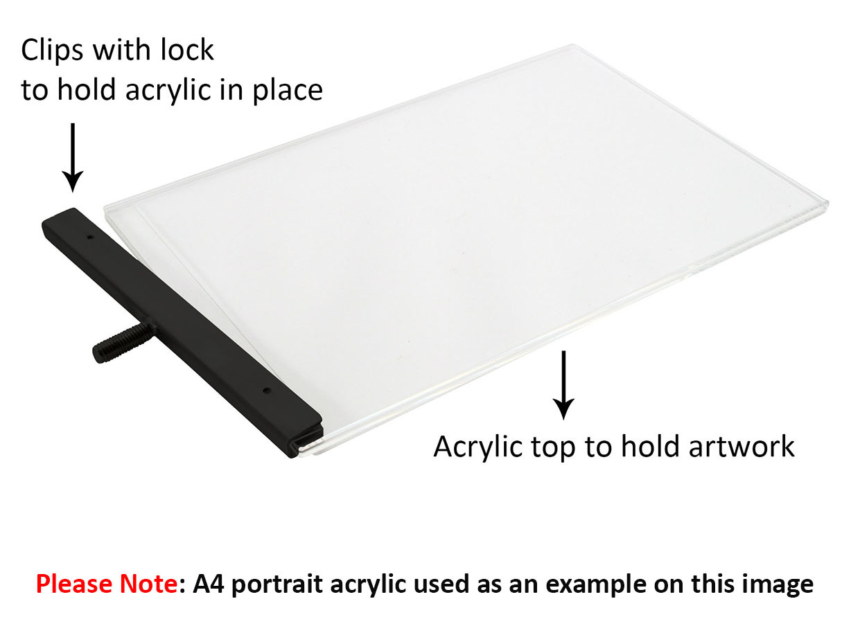 This Black Euro Sign Holder is a A4 Landscape sign that attaches to the top of the carousel. Th Euro Clip is a clip that holds together a piece of Acrylic that is holding the graphic. The Acrylic 3mm thick high quality acrylic has a crystal clear transparency.