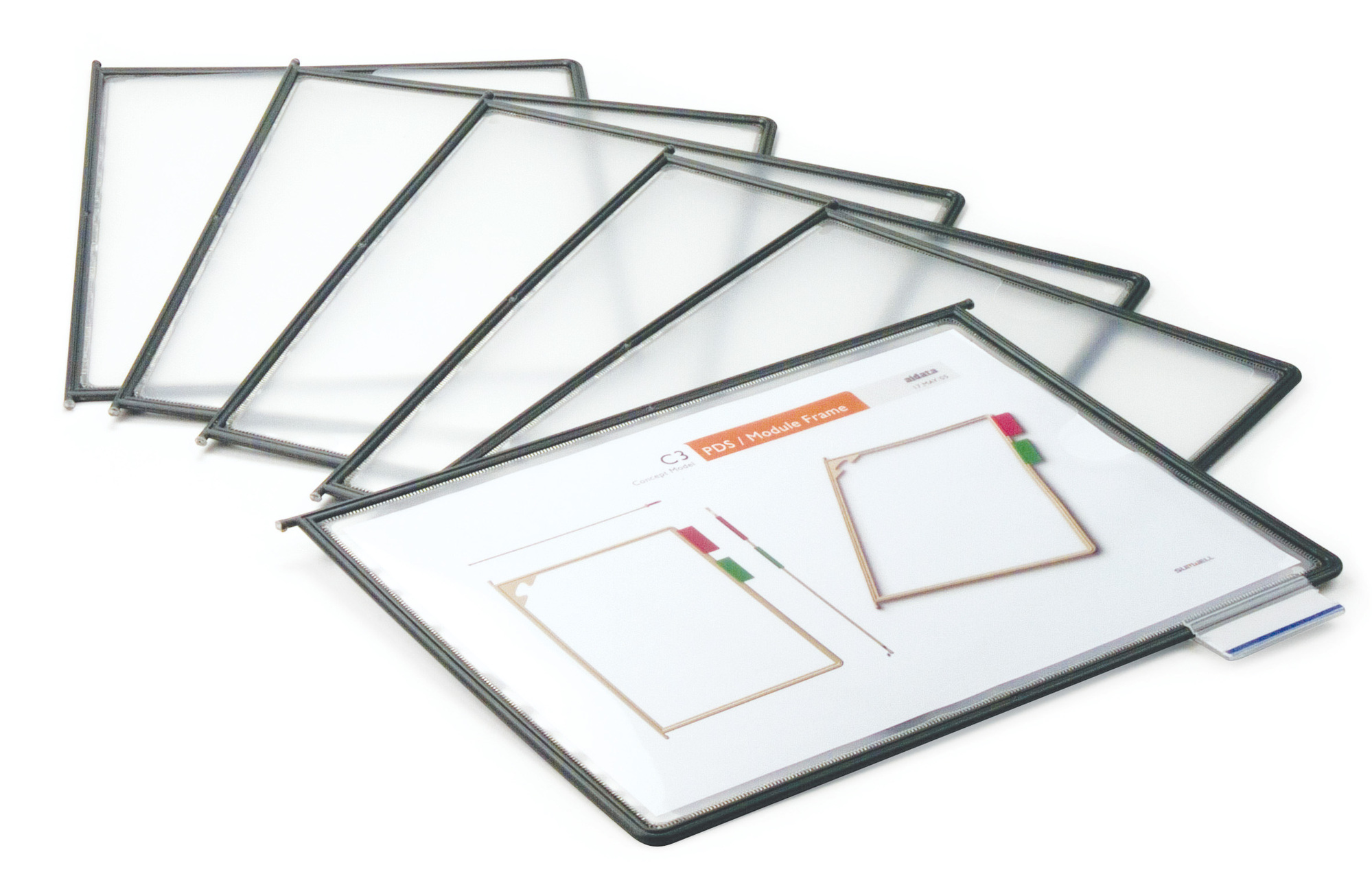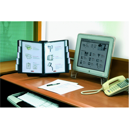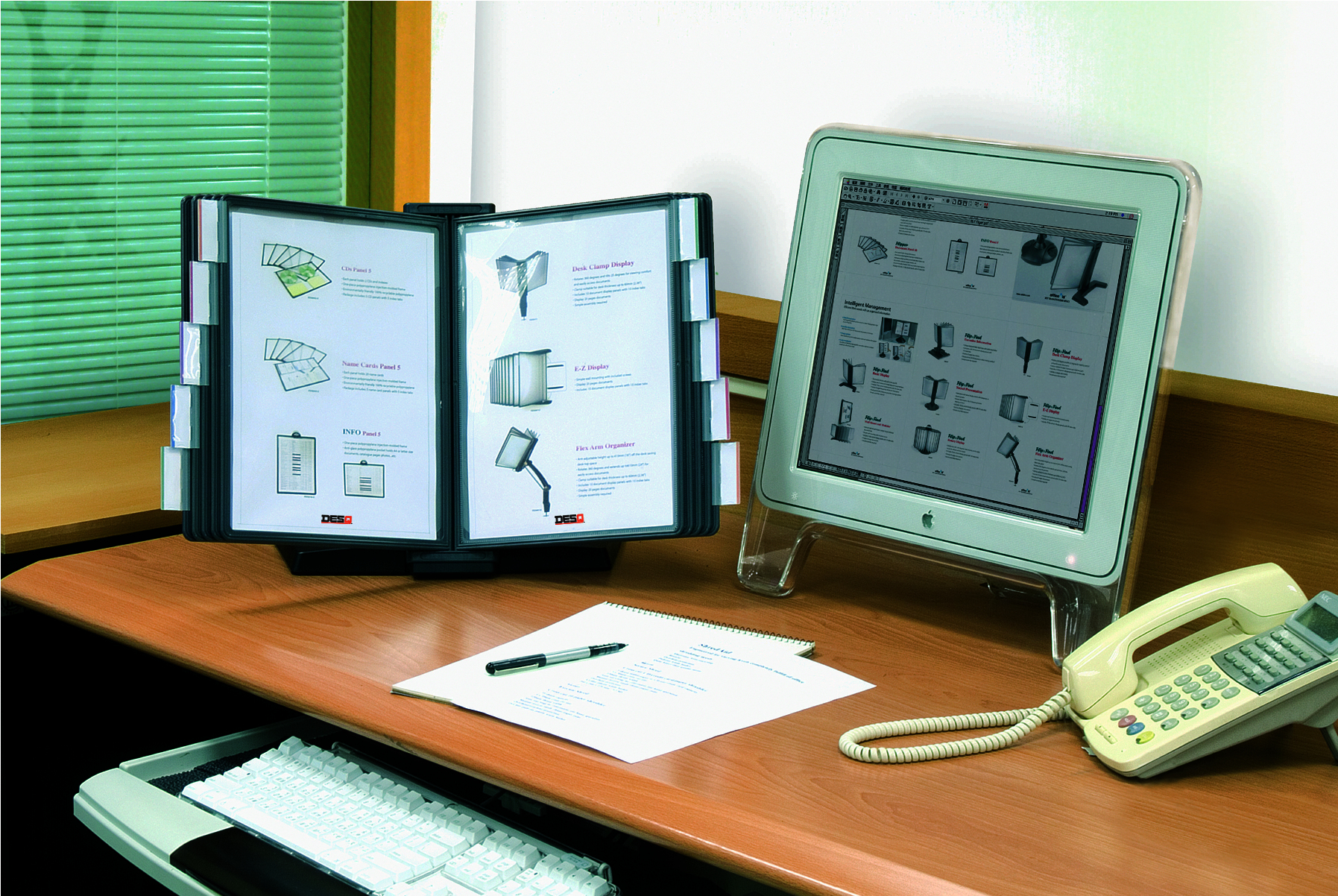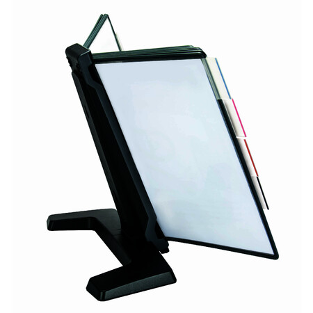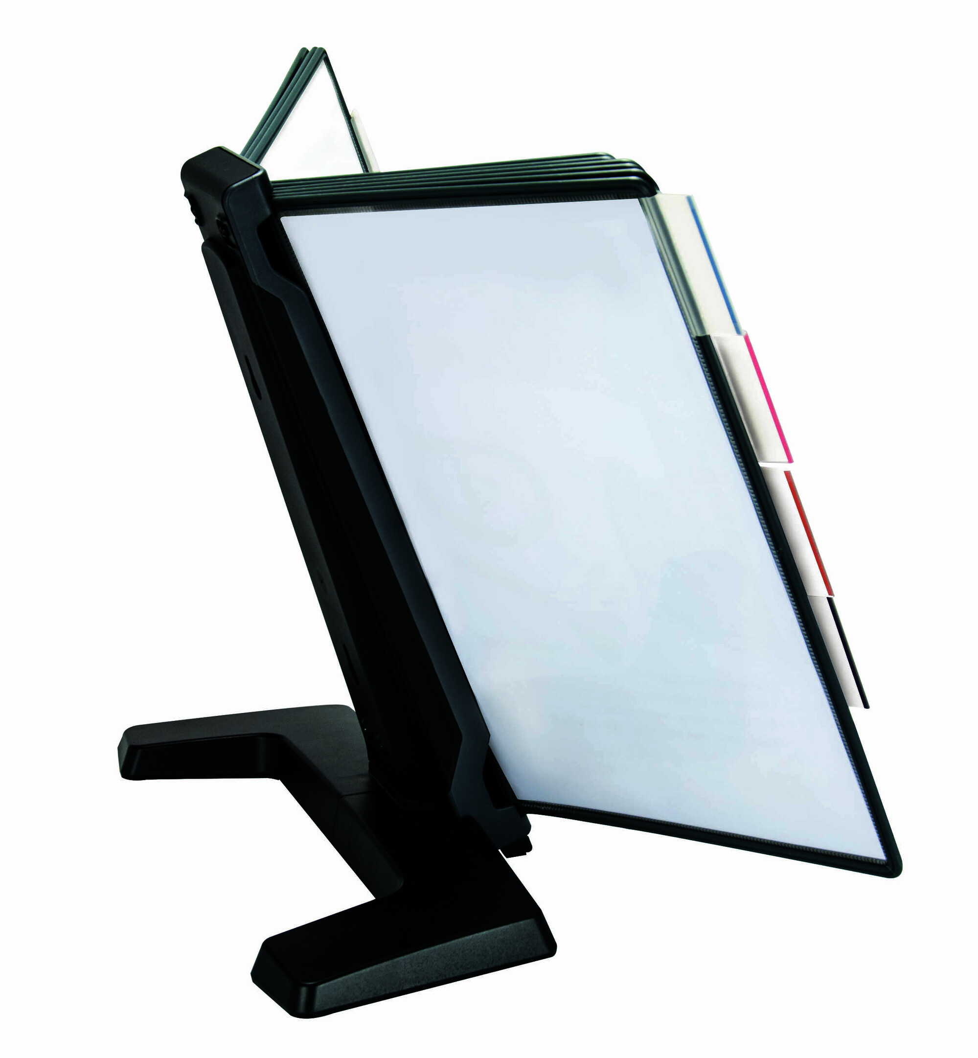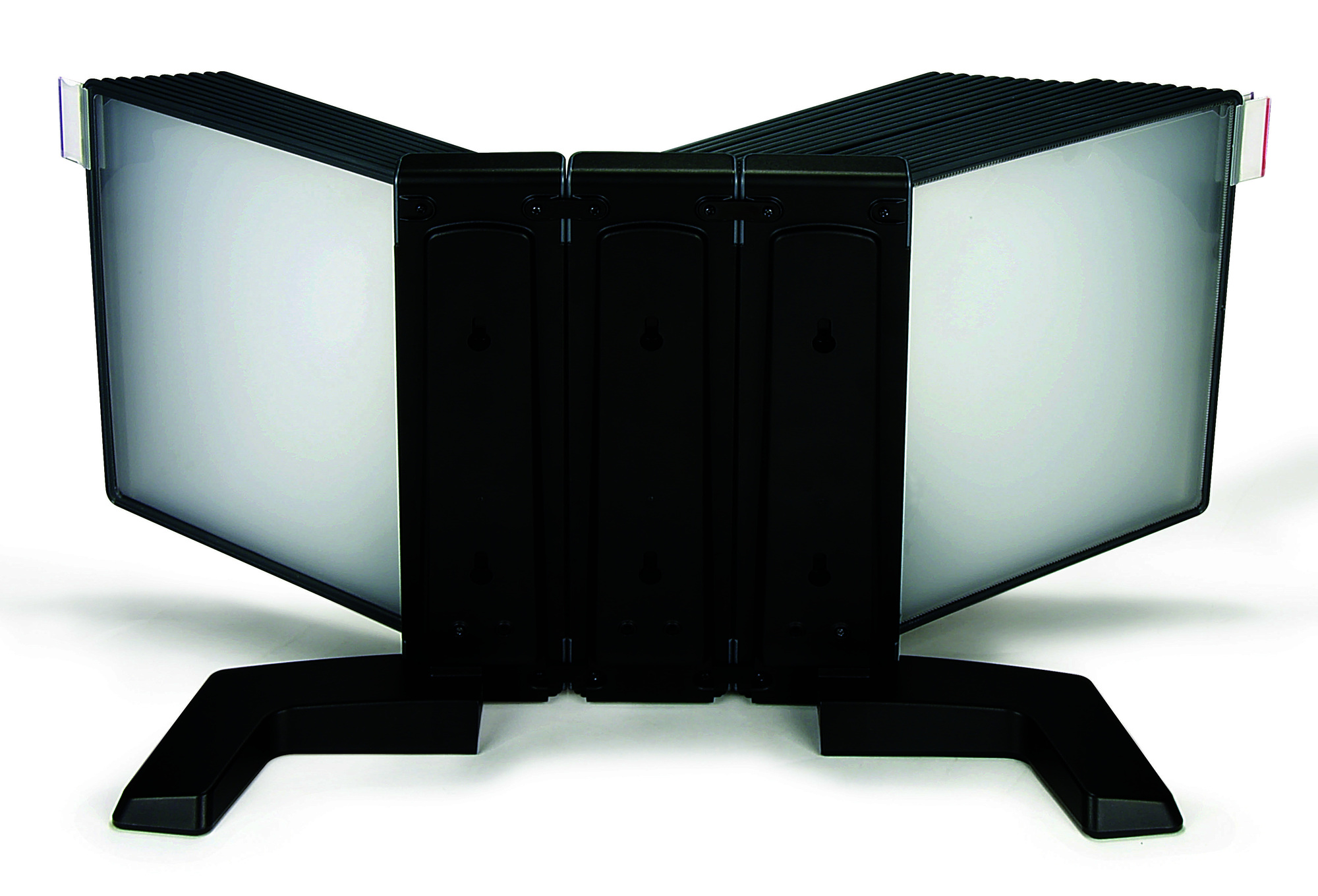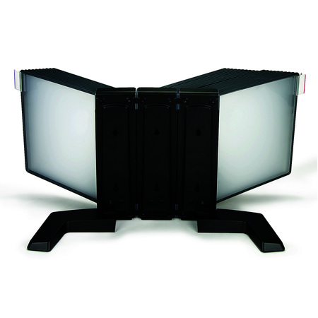 In StockThis desktop or tabletop A4 reference display is a document holder or folder designed to hold A4-sized papers (210 x 297 mm). These reference displays come with 30 pockets and colour coded index tabs to organize and categorize documents displaying 60 pages. This modular design has the capacity to add more display panels making it easy to flip and find. It has a sturdy slip-proof weighted base.