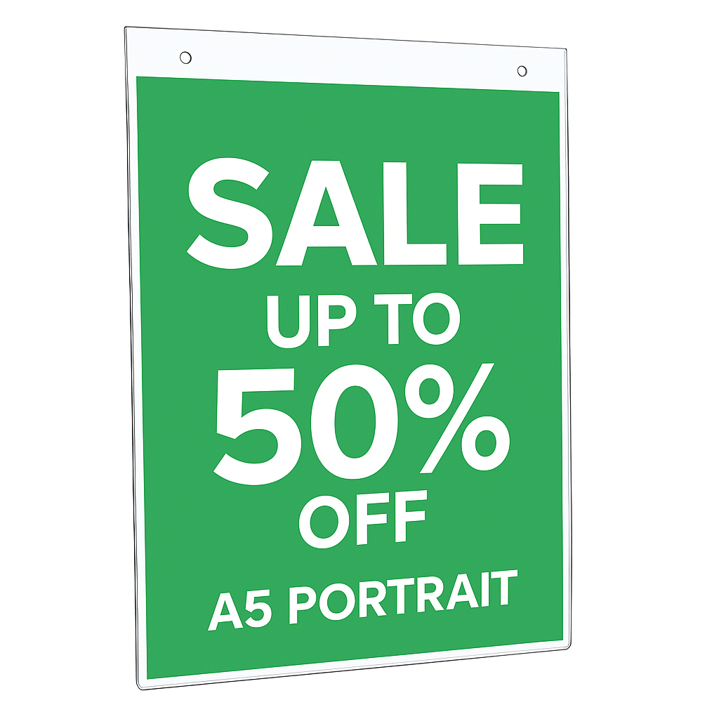 Designed specifically for portrait orientation, it features pre-drilled holes at the top for easy hanging or suspension from ceilings, hooks, or wires. The design allows you to insert and update signage quickly, keeping displays clean and professional.