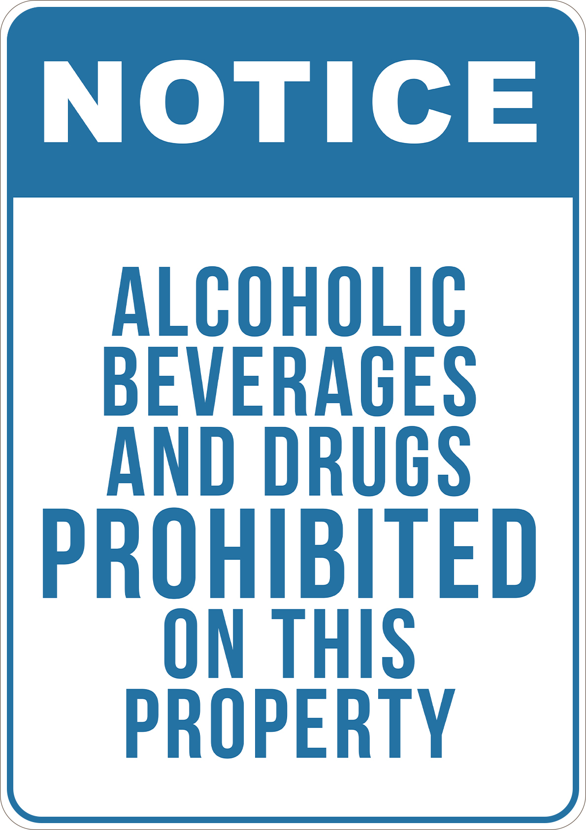 PRINTED ALUMINUM A3 SIGN - Alcoholic Beverages And Drugs Prohibited on This Property Sign