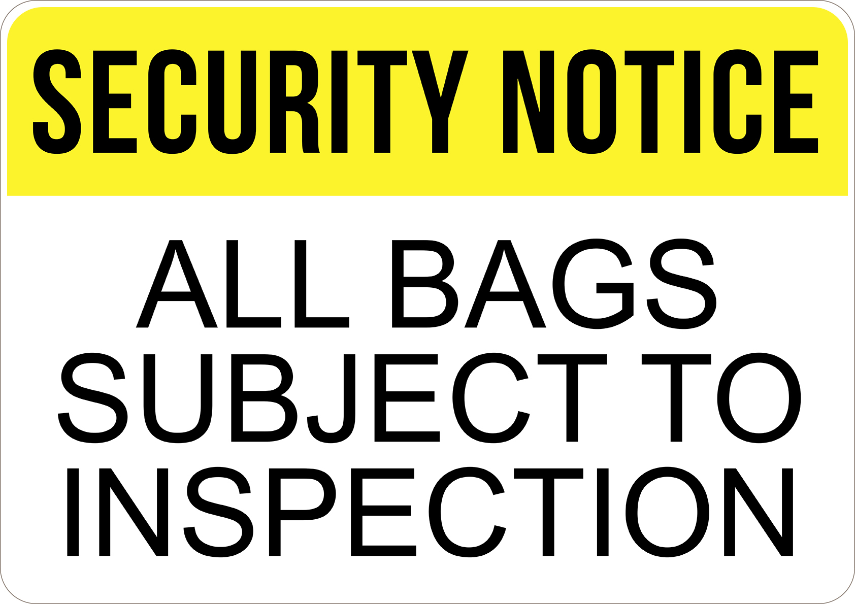 PRINTED ALUMINUM A4 SIGN - All Bags Subject to Inspection Sign