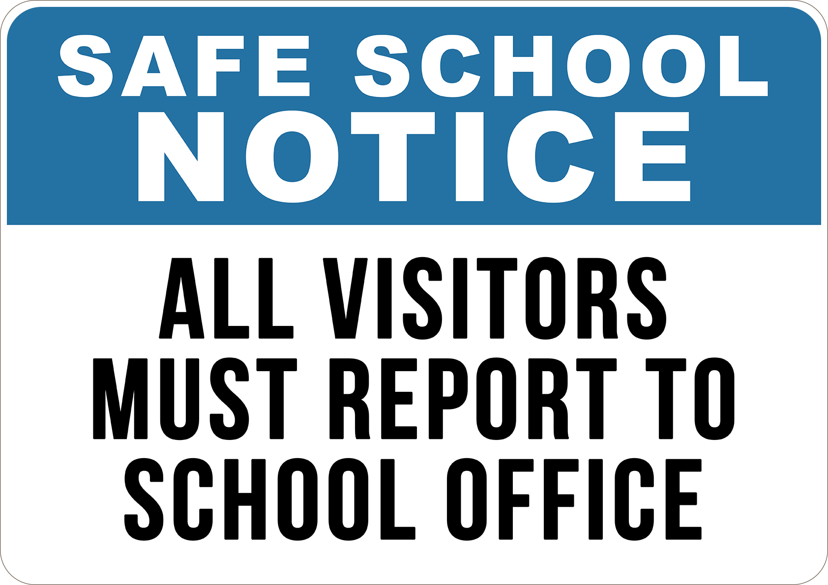PRINTED ALUMINUM A5 SIGN - Safe School Notice All Visitors Must Report to School Office Sign