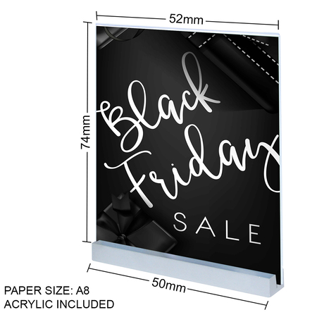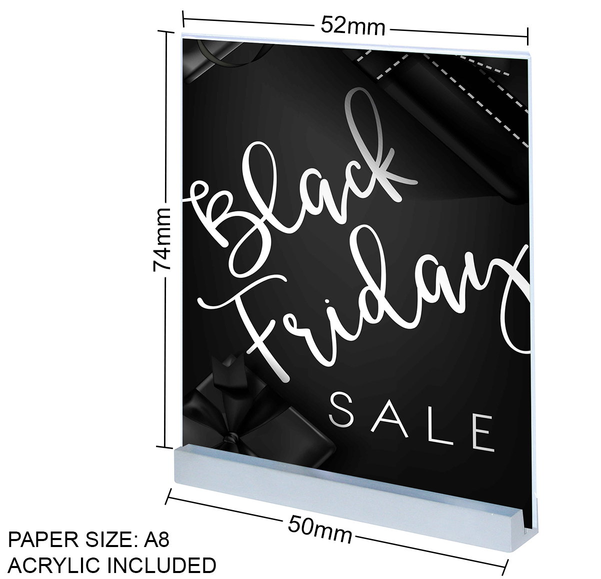 In StockOur Elements Sign Holder, Aluminum Base Acrylic Sign holder, Silver Base Acrylic Menu Holders are a modern stylish table talker that has a silver Aluminum base and an acrylic top.