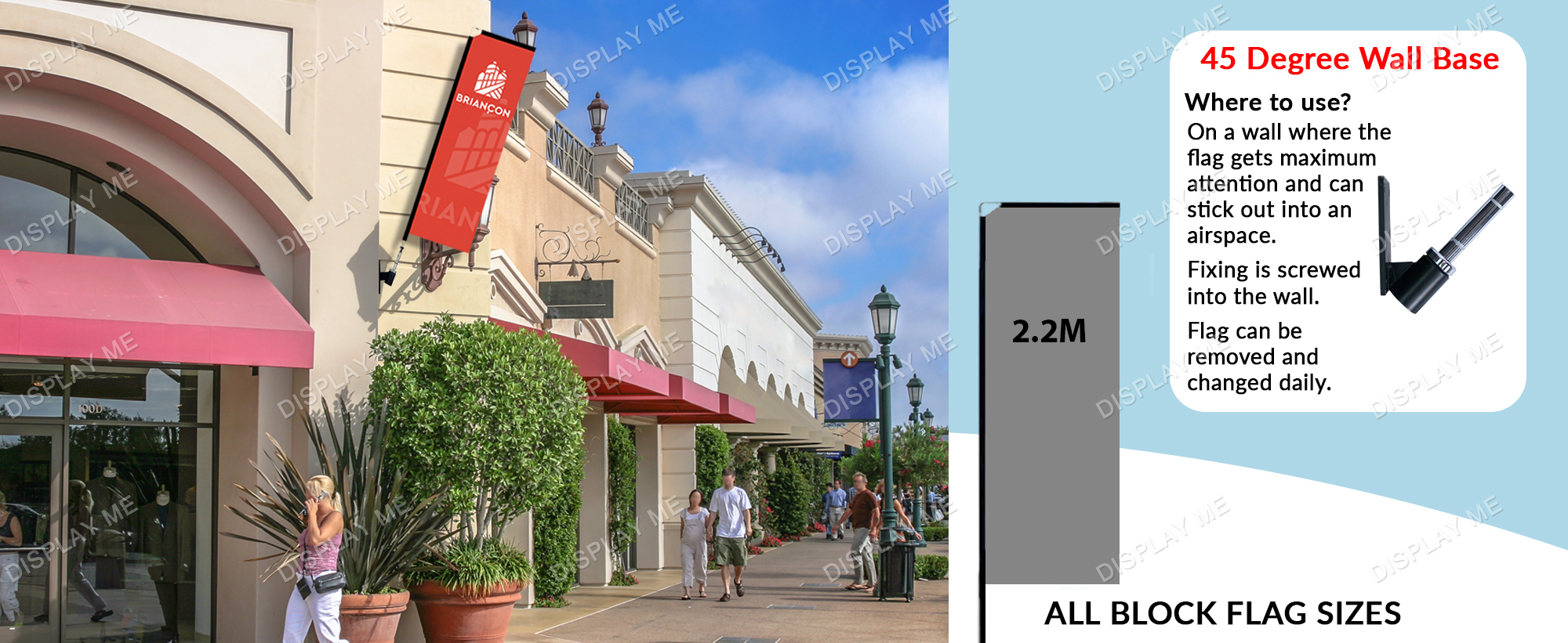 Double Sided 2.2 Meter Block Fabric Flag with 45 Degree Wall Mount