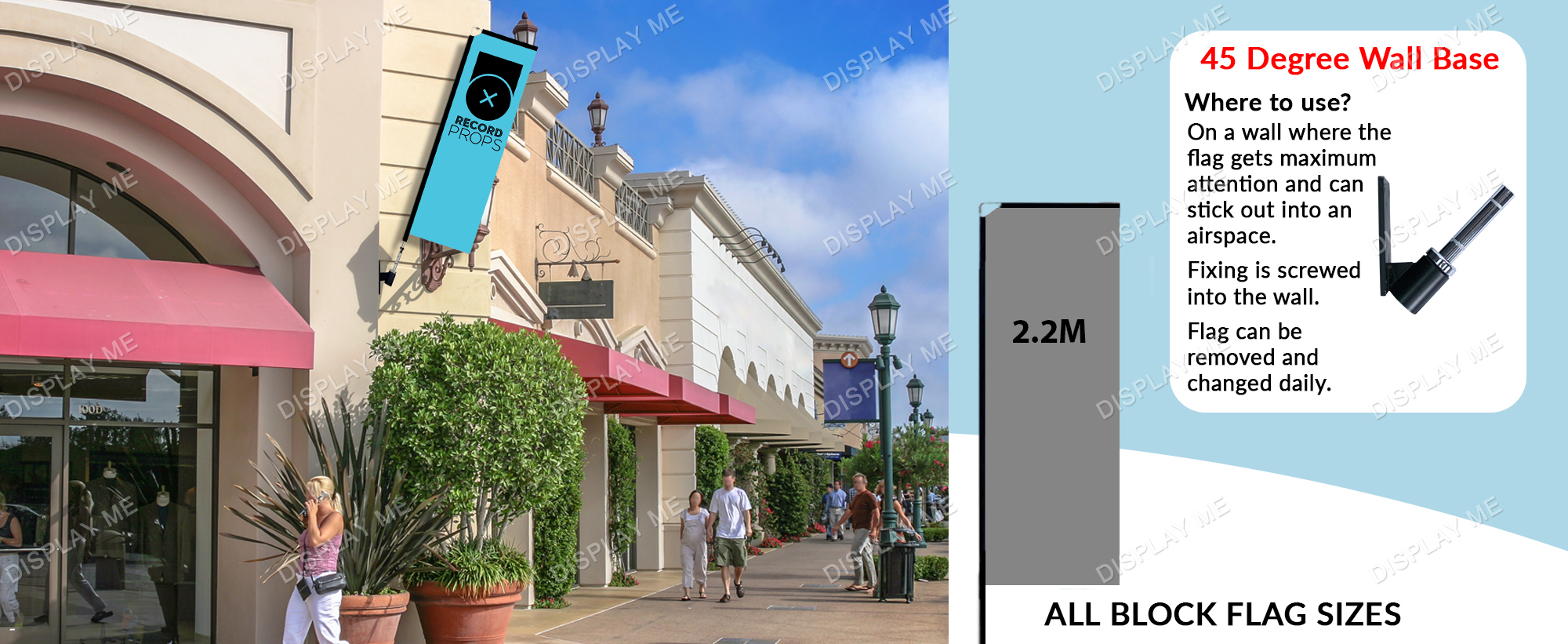 Single Sided 2.2 Meter Block Fabric Flag with 45 Degree Wall Mount