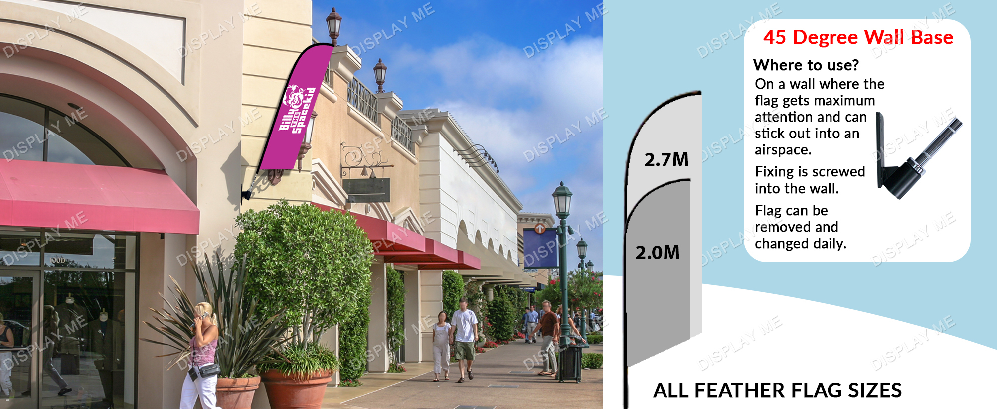 Double Sided 2 Meter Feather Fabric Flag with 45 Degree Wall Mount