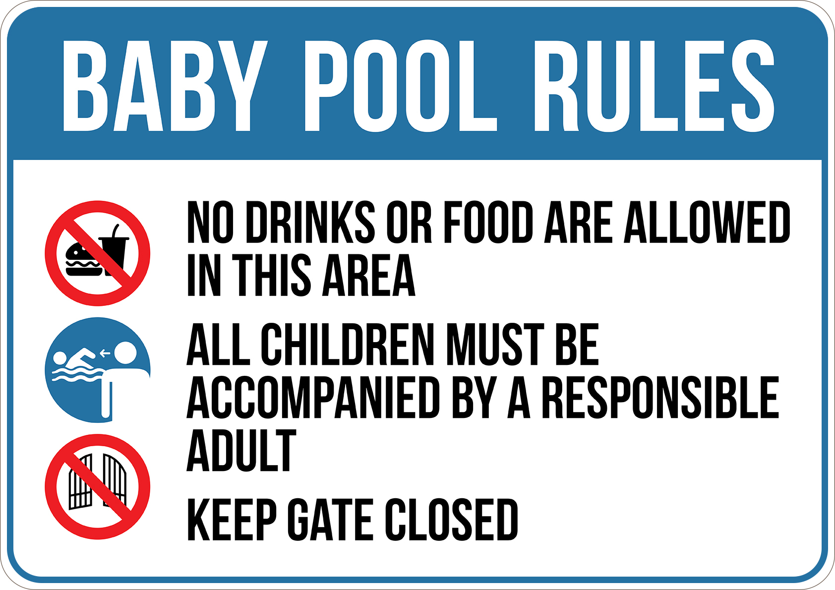 PRINTED ALUMINUM A2 SIGN - Baby Pool Rules Sign