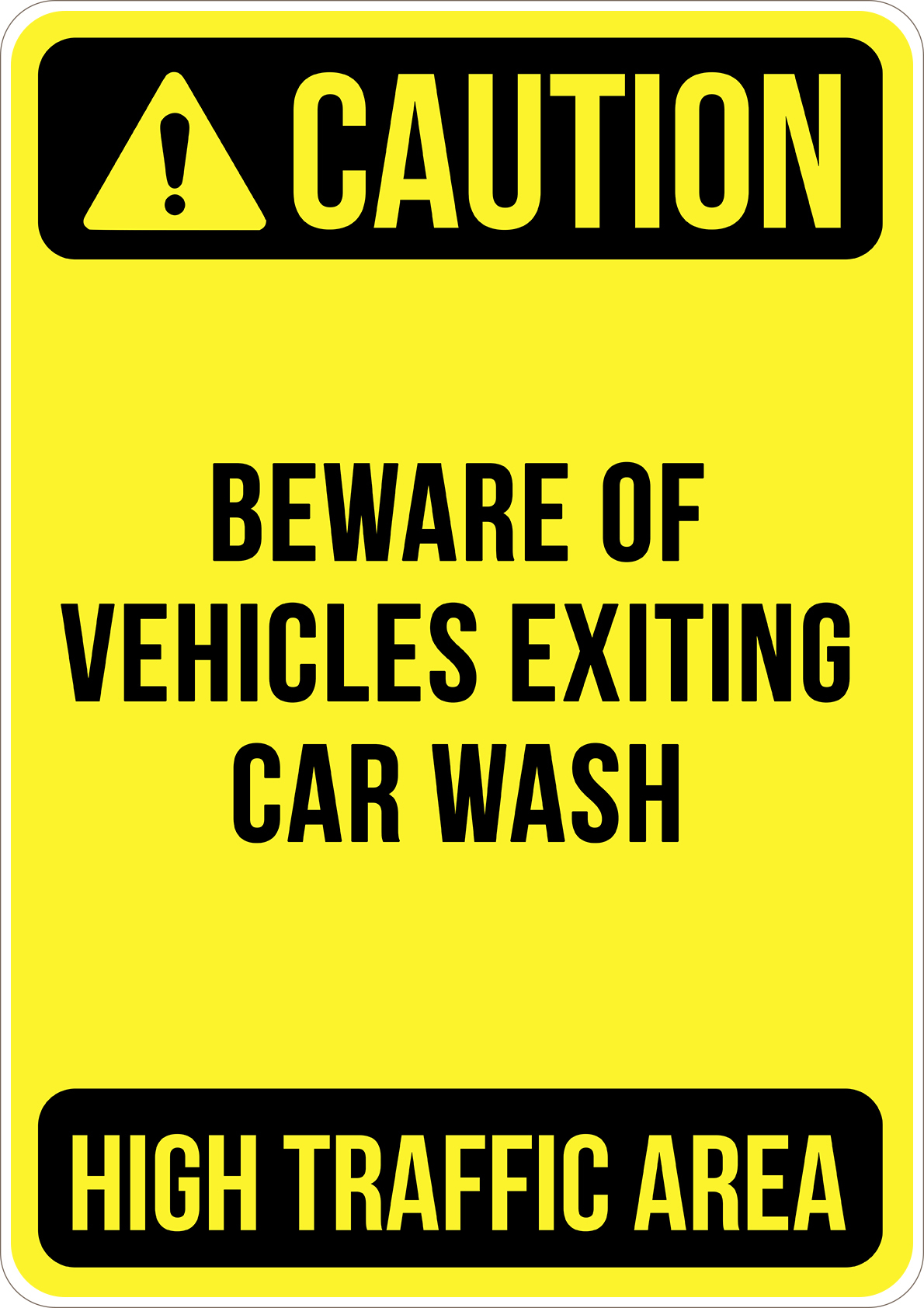 PRINTED ALUMINUM A3 SIGN - Beware of Vehicles Exiting Carwash Sign
