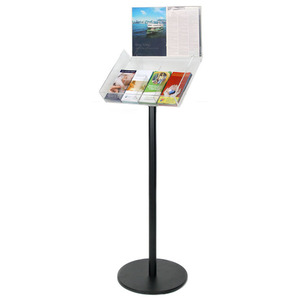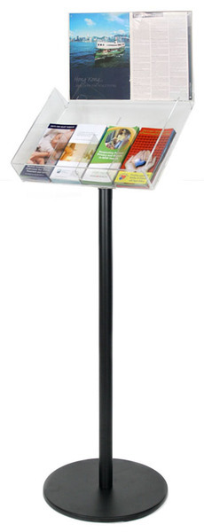 - This brochure holder can display 4 piles of DL brochures in portrait and a A3 landscape header.