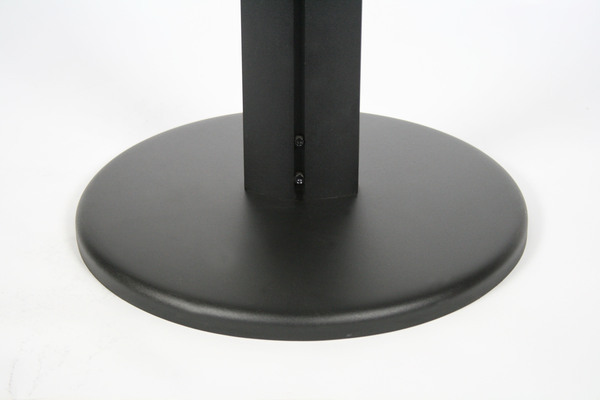 The heavy base comes with a heavy plate giving it extra stability. It has a rubber surface to avoid scratching the floors.