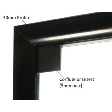 This 600 x 900mm Black Corflute Deep snap frame clips open from the front and around all four sides. The clip frame system makes changing graphics easier without having to remove the frame from the wall each time. These poster frames are also called snap frames or clip frames. They can be displayed in portrait or landscape orientation and come supplied with mounting hardware. They can take inserts that are between 3 to 6mm thick. Theyare ideal for advertising as well as general signage and can be used in a variety of indoor and outdoor locations for a smart, professional look for your businesses signage.