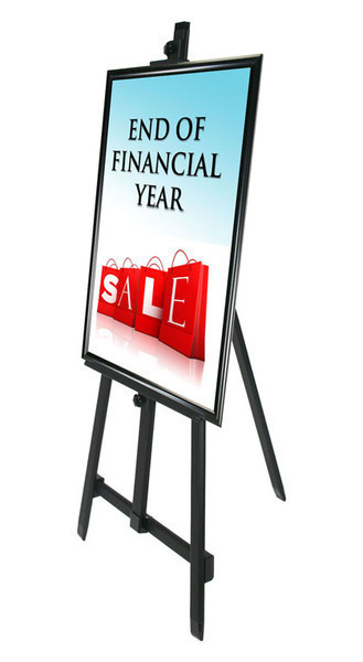 This Black lightweight aluminium Easel is 1500mm in height, Also known as Artists Easels, easel board displays. This Easel is able to hold a variety of different signage materials that are up to 1250mm high and 20mm deep. The signage material is placed on the horizontal plank and held into place by adjusting the knobs. You can also adjust viewing height by using the knobs to the desired position. It has a Stylish Black anodized finish and only weight 3.6 kilos so it is easy to move around . They are ideal to hold Poster Frames, Canvases, Lightboxes and more for advertising in retail stores as well as general signage and can be used in a variety of indoor locations for a smart, professional look for your businesses signage.