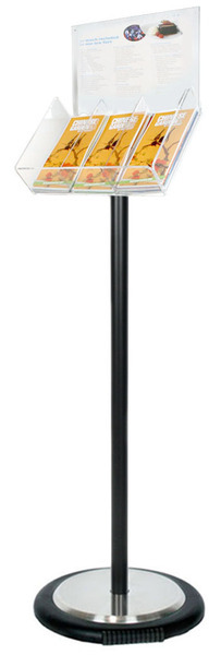 Black Freestanding Brochure Holder Holds 3 DL with Wheel Base