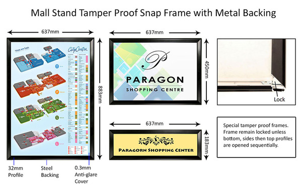- 2 x Black A1 Steel Tamper Proof Black Snap Frame