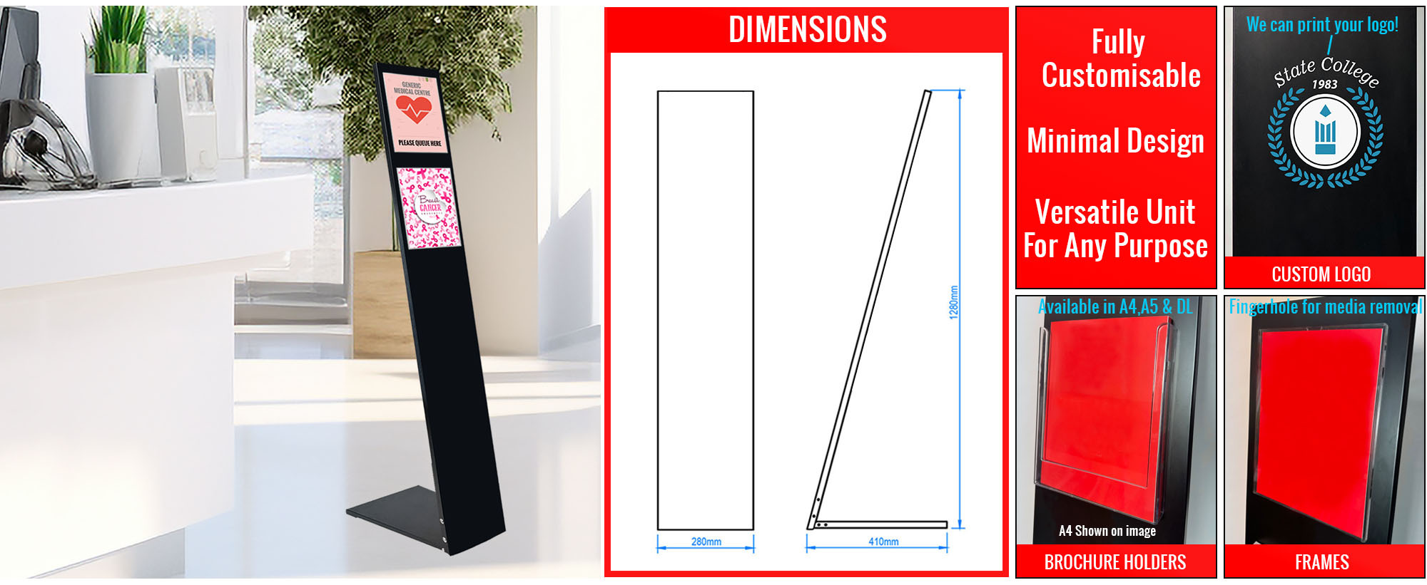 Black Mod Info Stand with 2 A4 Acrylic Poster Displays