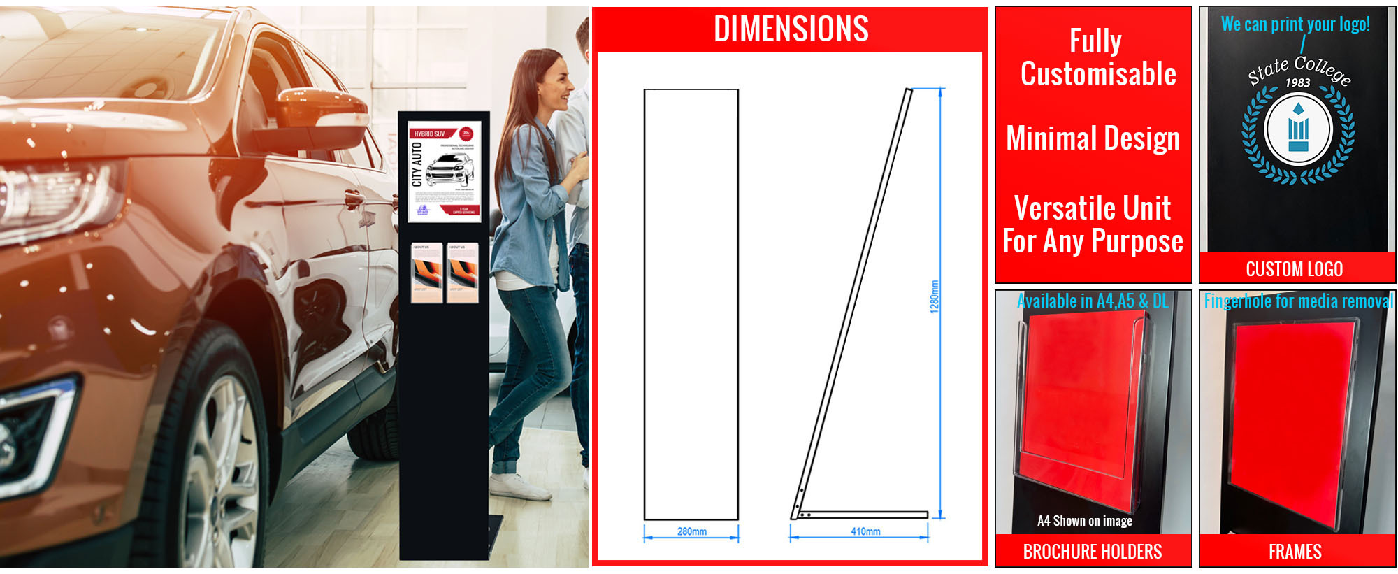 Mod Info Stand is a perfect solution for displaying important information in a sleek and professional manner. Whether you're organising an event, running a business, or need an informational display for any setting, this information stand offers the ideal combination of style and functionality.