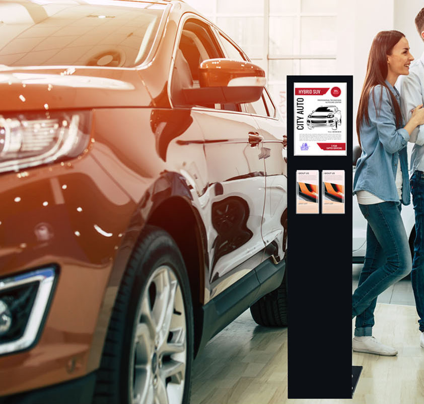 Black Mod Info Stand with 1 A4 Acrylic Poster Display and 2 DL Acrylic Brochure Holders
