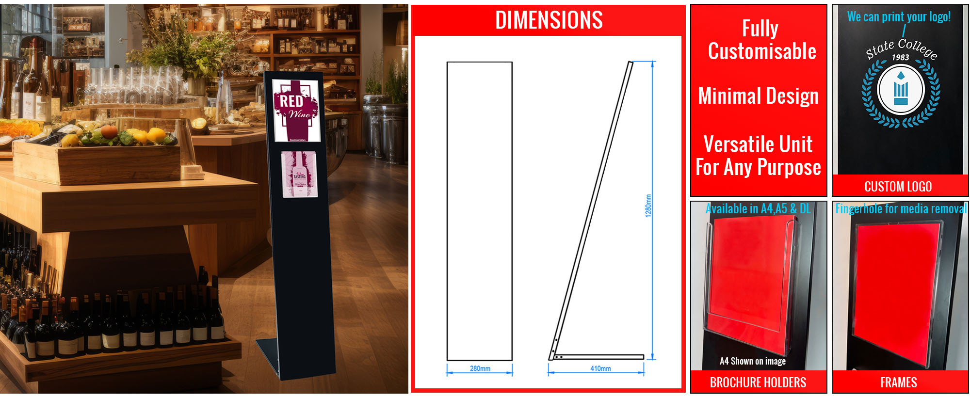 Mod Info Stand is a perfect solution for displaying important information in a sleek and professional manner. Whether you're organising an event, running a business, or need an informational display for any setting, this information stand offers the ideal combination of style and functionality.
