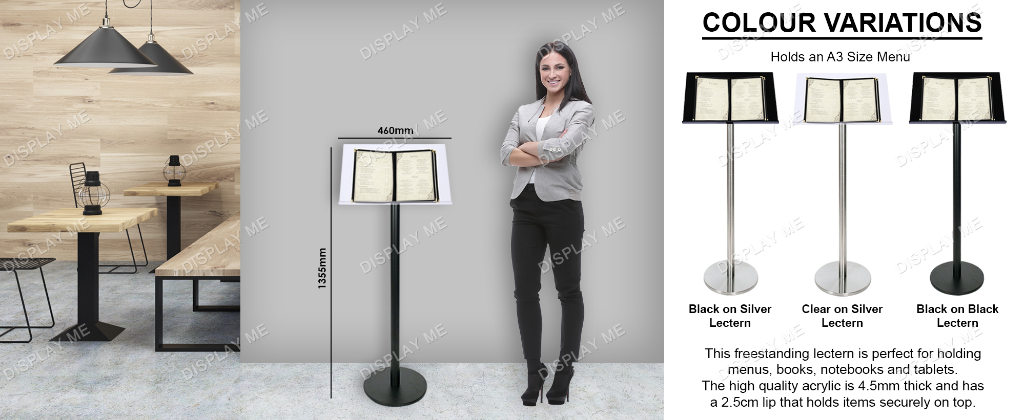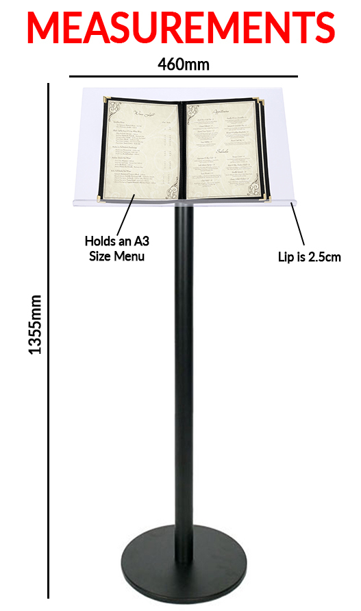 Perfect for restaurants, bars, cafes, canteens, pubs, clubs or any location requiring a book or menu to be displayed.