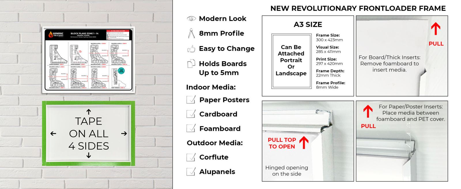 BULK PACK – 10 x A3 White Front Loader Poster Frames with Tape