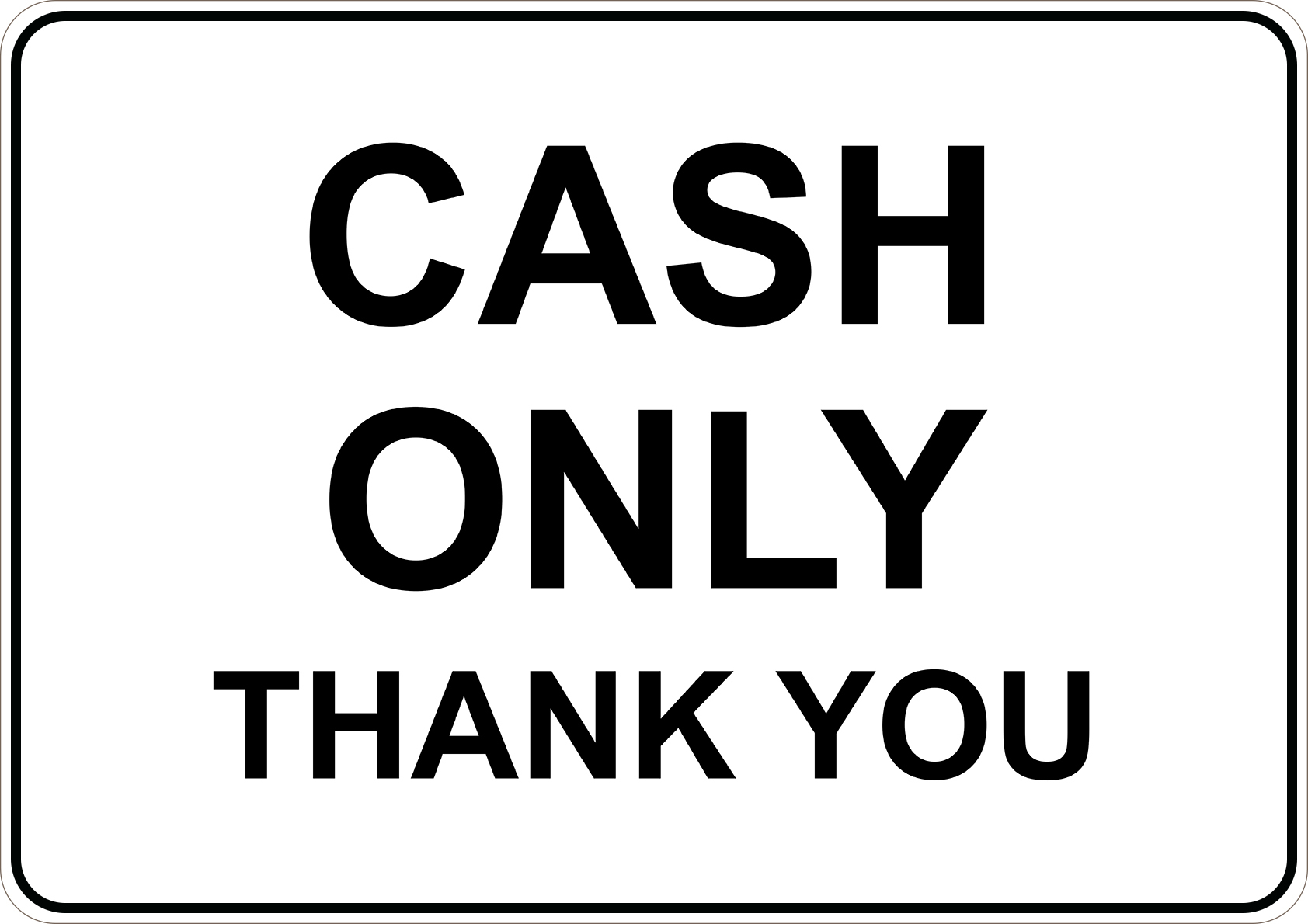 PRINTED ALUMINUM A5 SIGN - Cash Only Thank You Sign