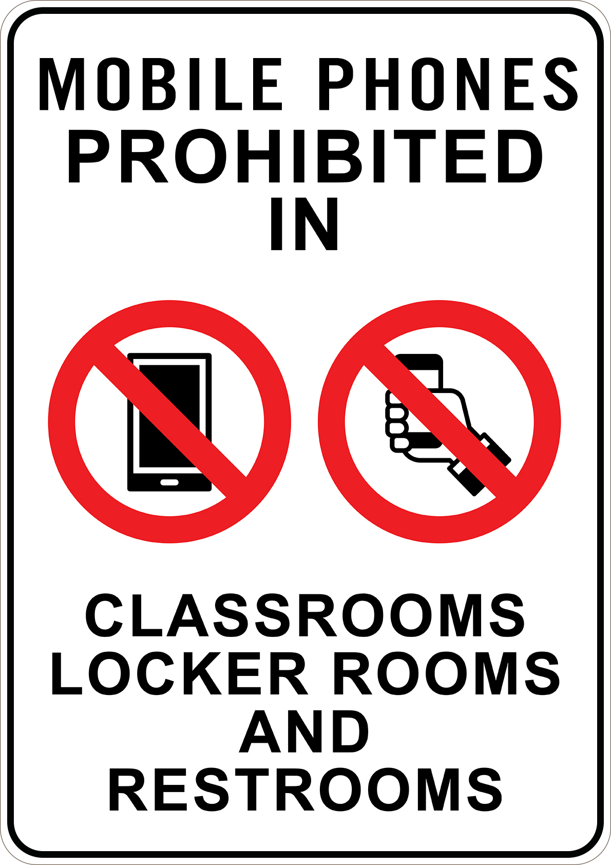 PRINTED ALUMINUM A5 SIGN - Mobile Phones Are Prohibitted In Classrooms Lockers and Restrooms Sign