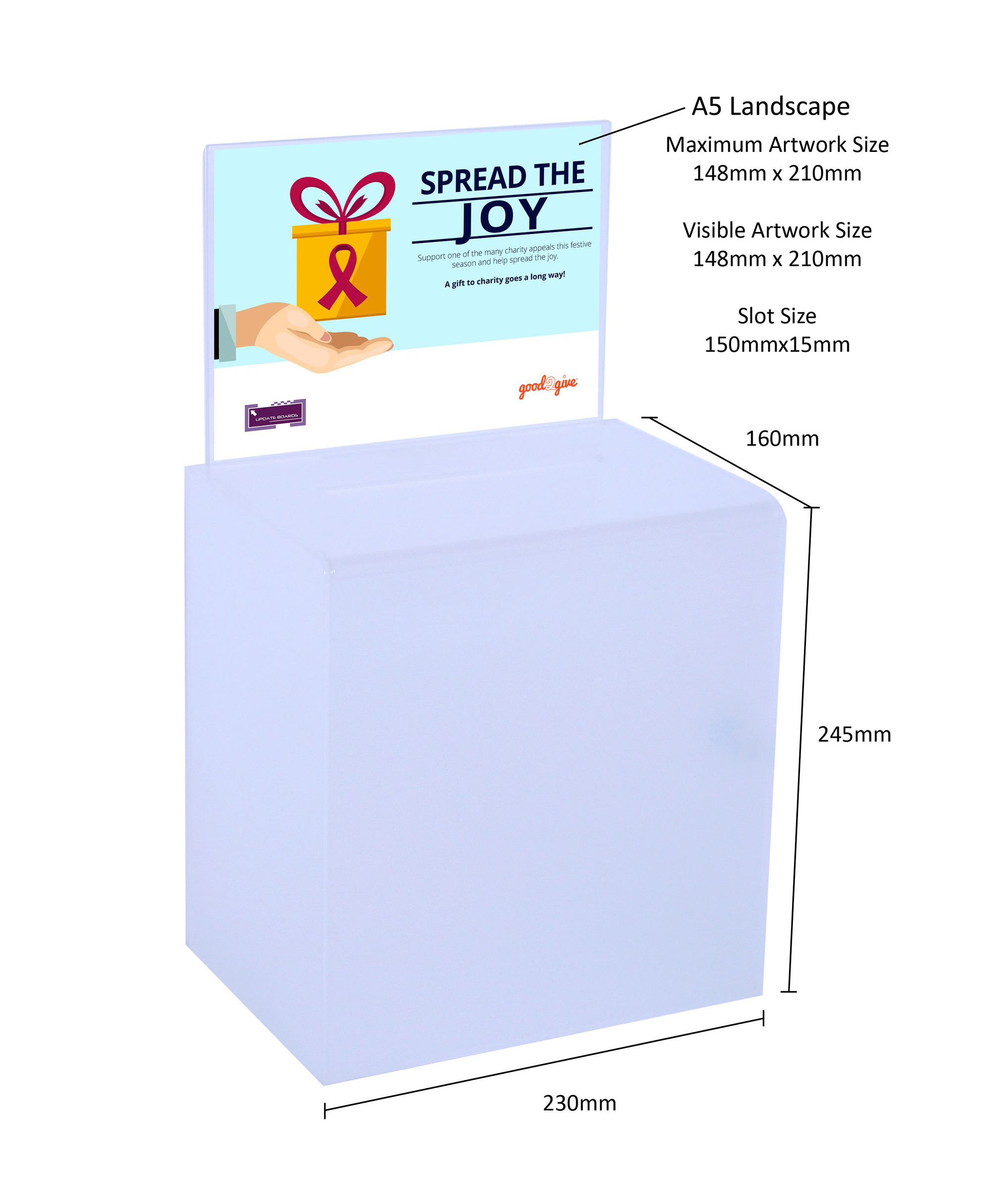 The suggestion box is made from 3mm thick high quality translucent acrylic that offers privacy to contents placed in the ballot box. It comes with a clear acrylic sign holder.