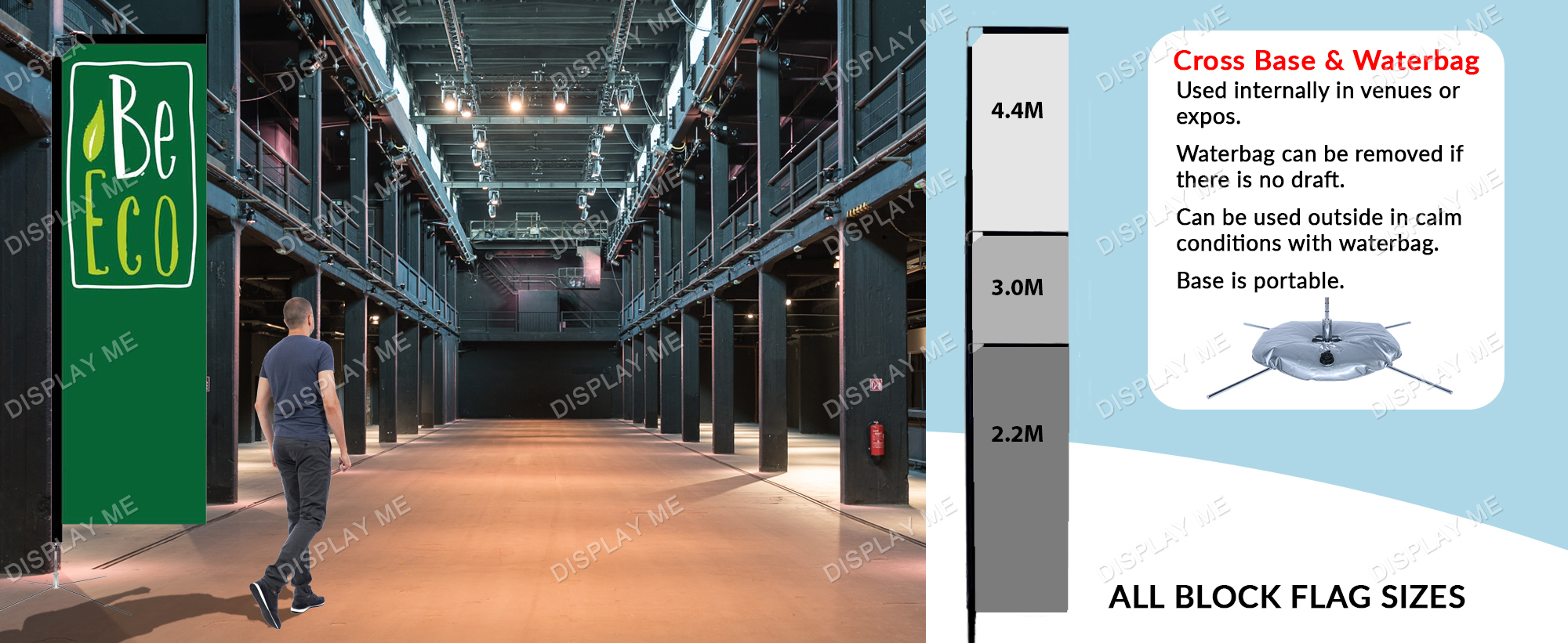 Double Sided 4.4 Meter Block Fabric Flag with Cross Base and Water bag