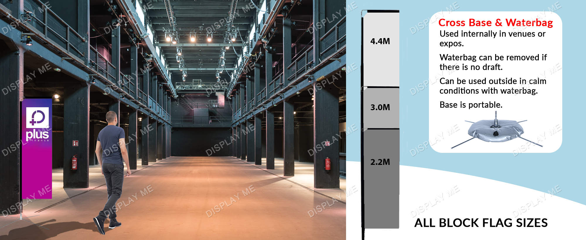 Double Sided 2.2 Meter Block Fabric Flag with Cross Base and Water bag