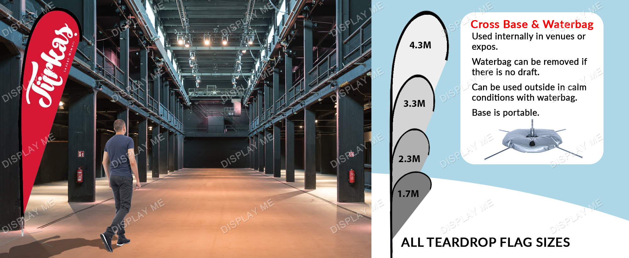 Double Sided 4.3 Meter Teardrop Fabric Flag with Cross Base and Water bag