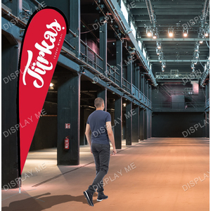 Teardrop Fabric Banner is also called Flying Banner. The Teardrop Fabric Banner comes complete with poles, printed banner, carry bag and a your selected mounting option. This Teardrop Fabric Banner can be produced in both single sided or double sided versions and replacement fabric banners give you the flexibility to change your graphic and message with ease. It is an ideal street banner to be used in moderate winds and weather. Although perfect for outside use, this Teardrop Banner can also be used for an indoor events.