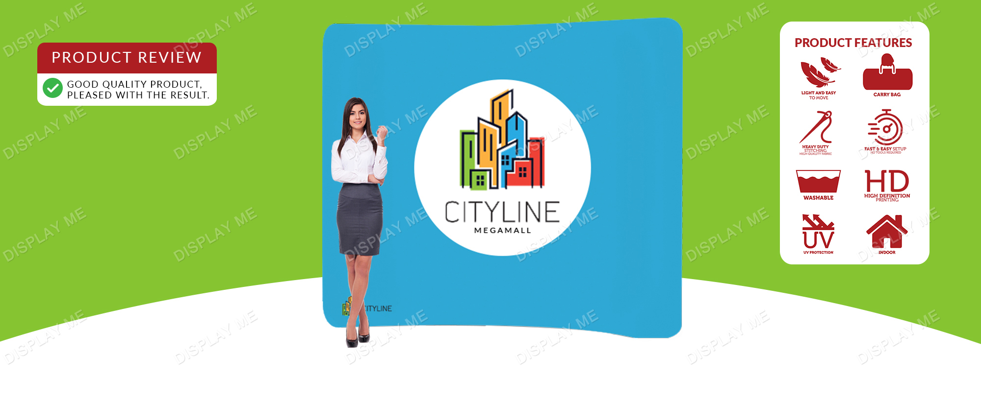 Widely used as a portable trade show stand or Exhibition Display System promoting your business or product for trade shows, shopping centres, retail stores exhibitions, expos and other events.