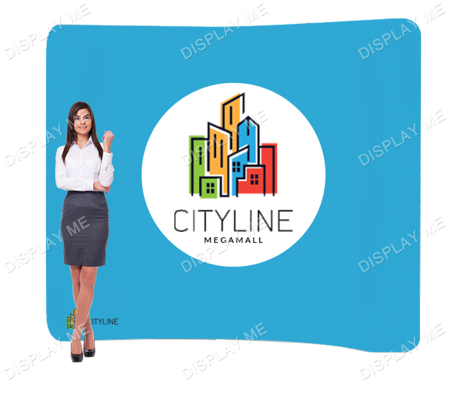 This single sided Fabric Curved Expo Wall is a cost effective, flexible and lightweight option to display your graphic message.